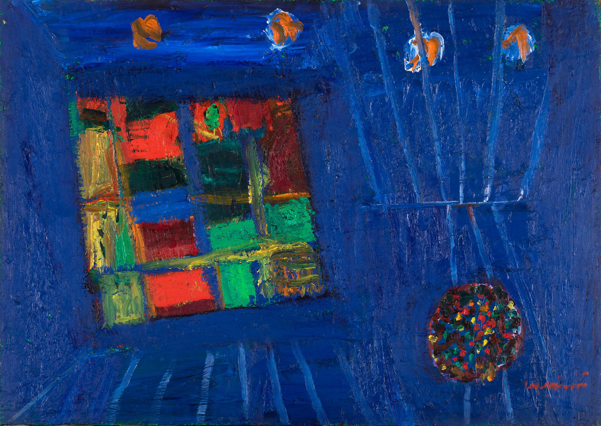 Bruno Cassinari Spazio Azzurro, 1990 olio su tela cm 70x50 firmato in basso a...