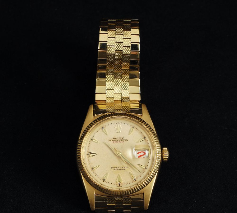 Lot 110 | Rolex Datejust “ovettone scritta rossa” ref. 6305 1. Cassa a tre corpi in oro...