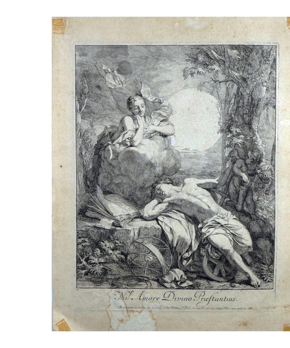 Lotto di sei incisioni del XVIII secolo di differente soggetto, il foglio cm....