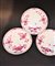 Tre piattini in porcellana bianca finemente dipinta nei toni del viola a...