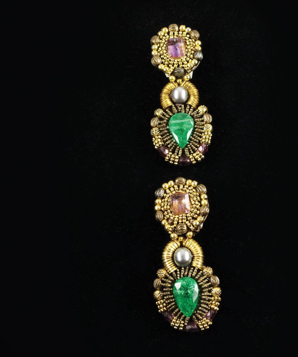 Lot 207 | Orecchini pendenti con crisopazio e ametista, h. cm. 6