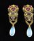Orecchini pendenti con rubini e acquemarine con goccia clair de lune, h. cm. 7,5