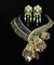 Fiori di Zaffiro collana a tralcio floreale asimmetrico con grandi quarzi e zaffiri a marquise, giade e perle; orecchini en suite, la collana l. cm. 37; gli orecchini h. cm. 8