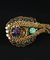 Bracciale decorato con perla di ametista scolpita e perla di turchese scolpita, l. cm. 11