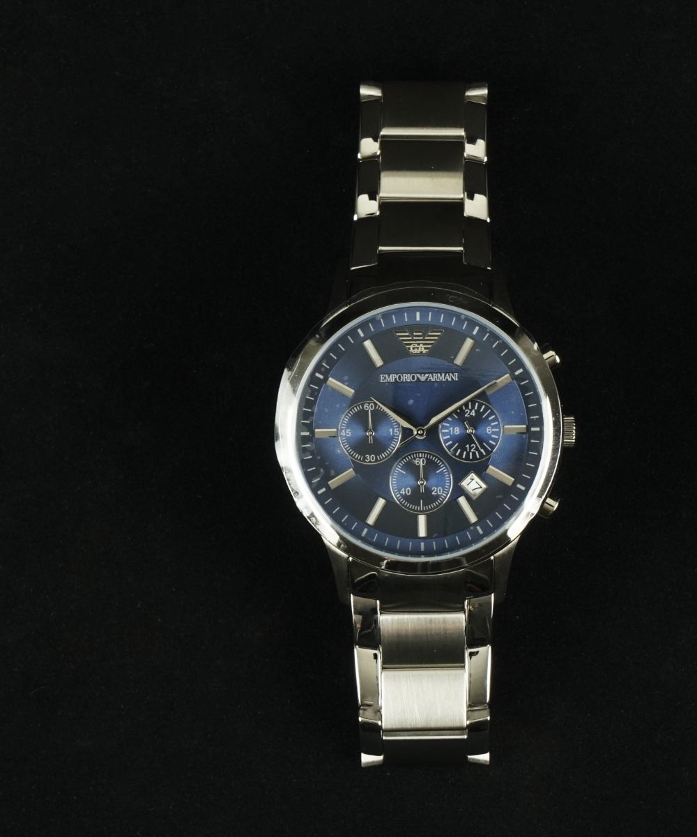 Emporio Armani cronografo da polso in acciaio; cassa da 43mm.; movimento al quarzo; completo di scatola originale