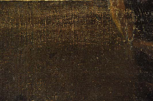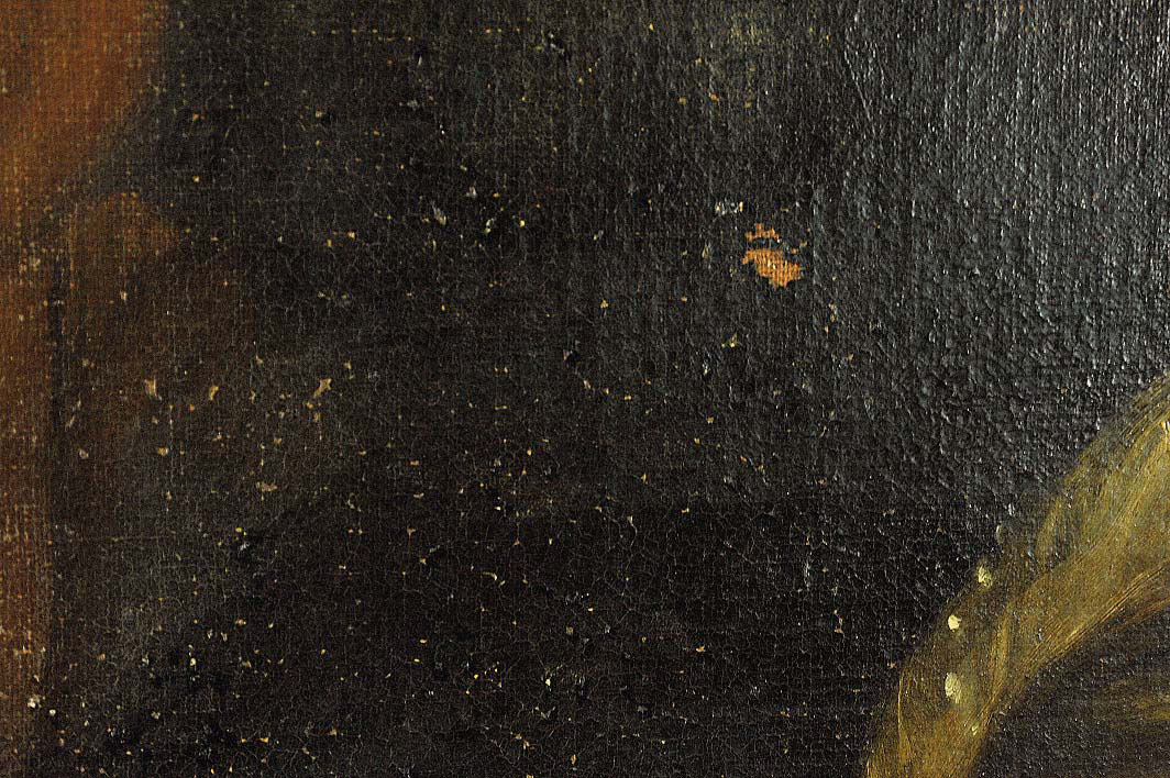 Segno: 40% (superficie pittorica molto danneggiata, ampie cadute e integrazioni approssimative per esempio sopra la testa, sulle braccia, sotto la mano cadente di Lucrezia, sul volto dell’uomo in primo piano e sul bordo inferiore a sinistra)