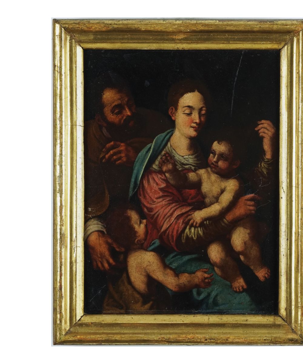 Pittore toscano del XVII secolo Sacra Famiglia con San Giovannino olio su...