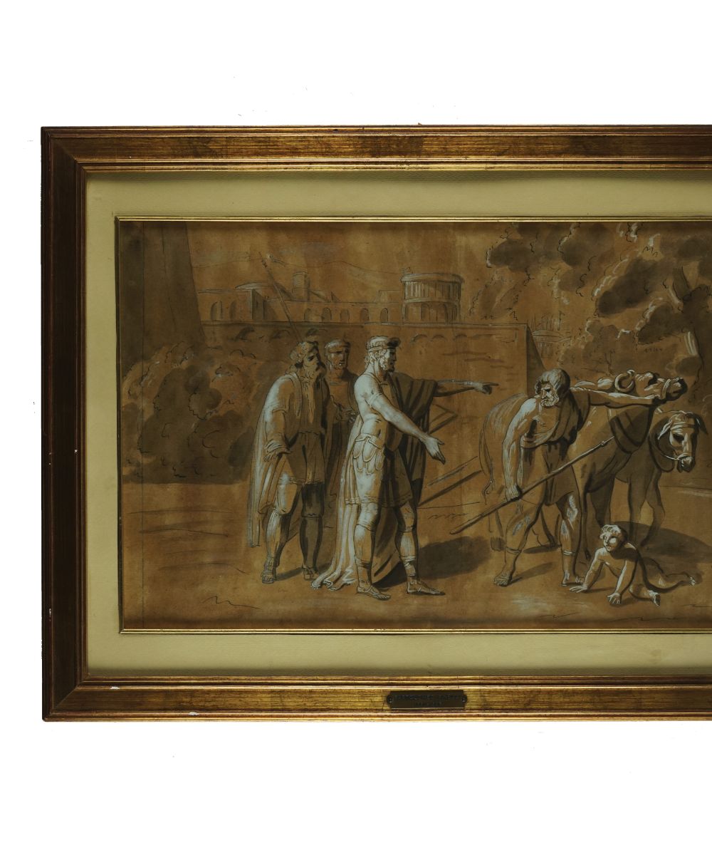 Pittore romano del XIX secolo Coriolano sconfigge i Volsci acquarello e...