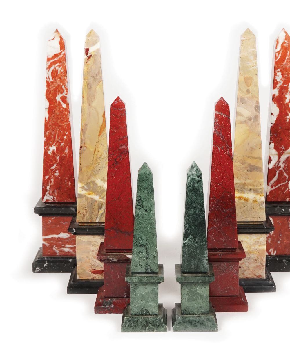 Lot 314 | Quattro coppie di obelischi in marmi diversi, h. da cm. 24 a cm. 42