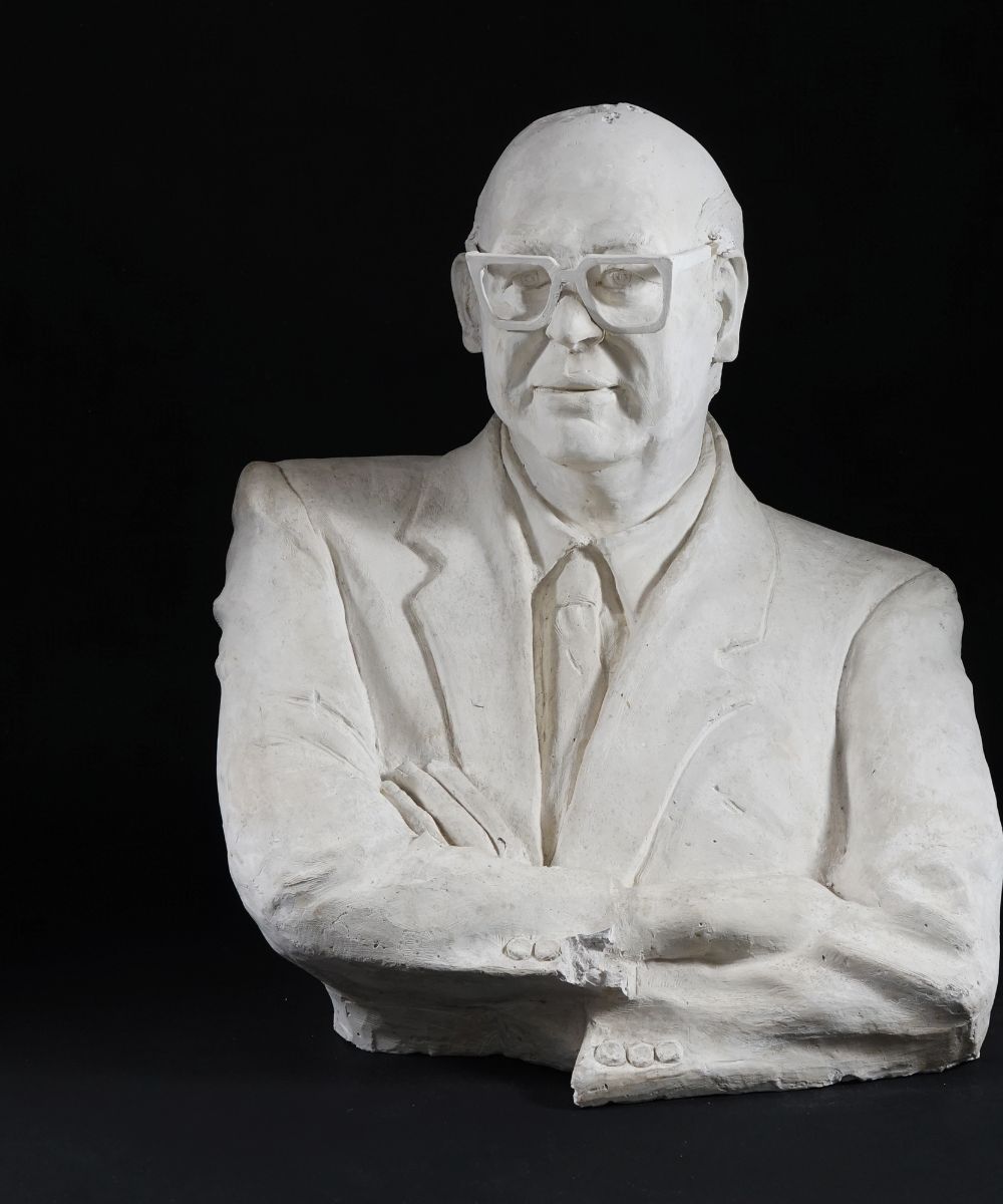 Scultura in gesso raffigurante il busto di Bettino Craxi, cm. 63x60x46 circa (lievi mancanze)