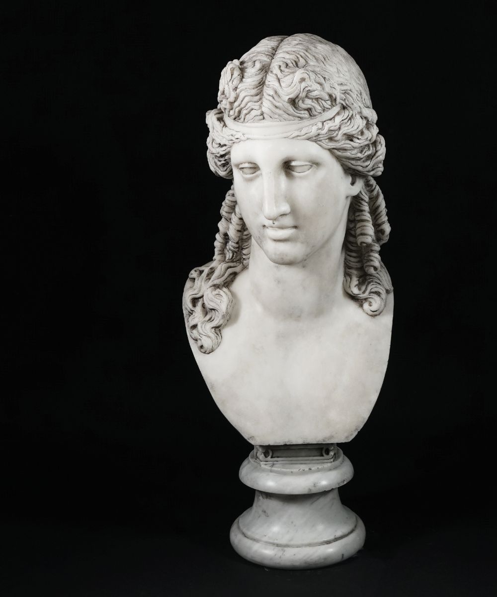 Lot 332 | Scultura in marmo bianco raffigurante la testa di Antinoo; piede tornito...