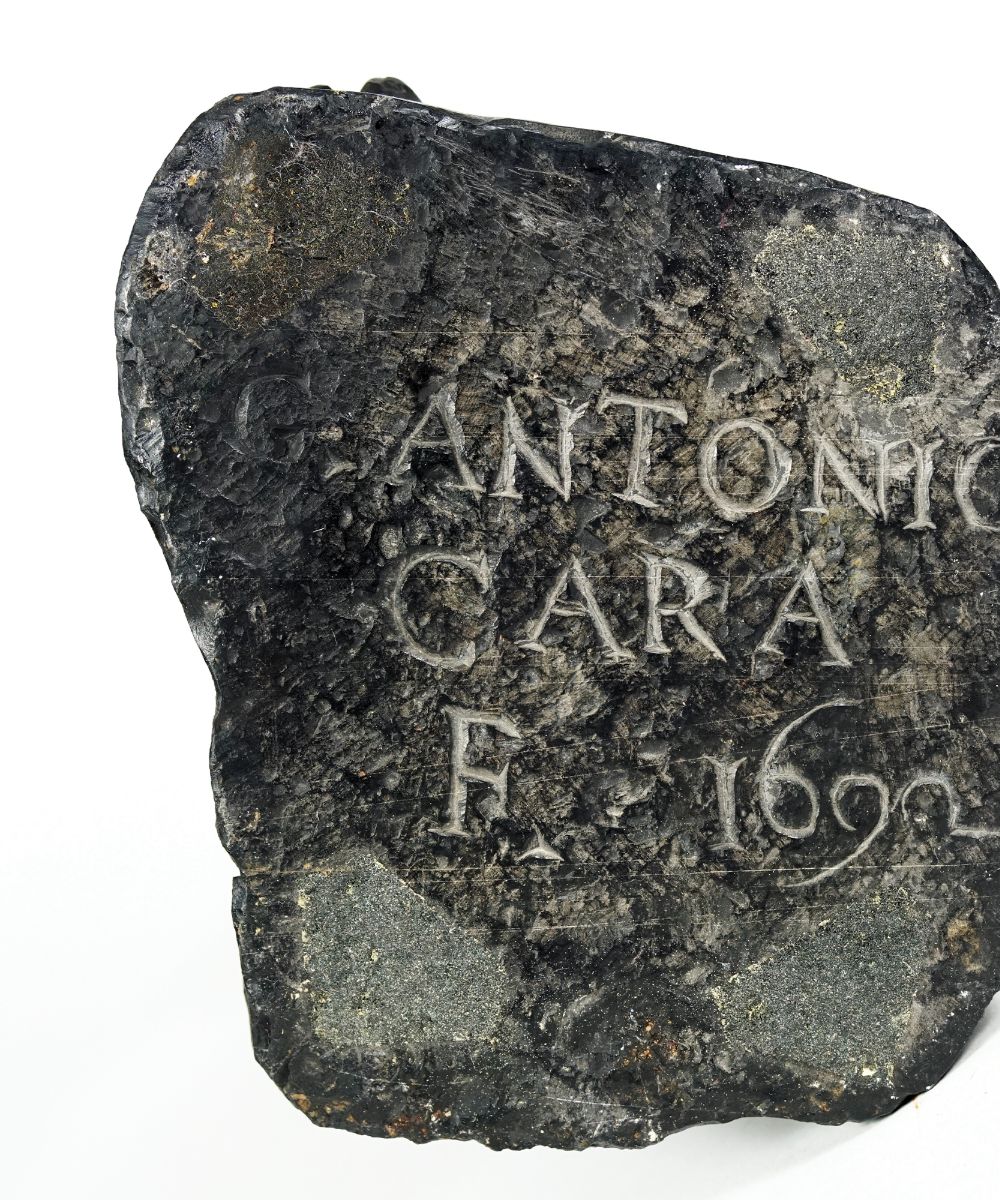 Sotto la base reca l'iscrizione incisa: Antonio Cara F. 1692