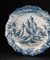 Piatto in maiolica bianca e blu dipinto a raffigurare un paesaggio con...