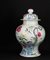 Potiche con coperchio in porcellana bianca e policroma. Corpo globulare...