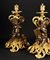 Coppia di candelieri in bronzo dorato e patinato cesellati a raffigurare un putto seduto fra rocailles fogliate e serti fioriti.