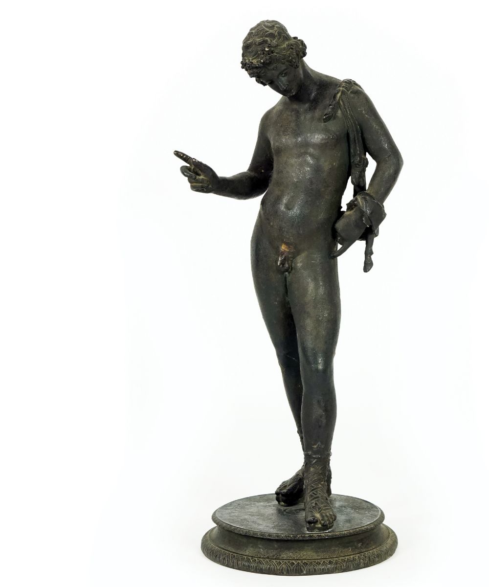 Scultura in bronzo patinato raffigurante Narciso, h. cm. 64; dall'originale conservato al Museo Archeologico Nazionale di Napoli