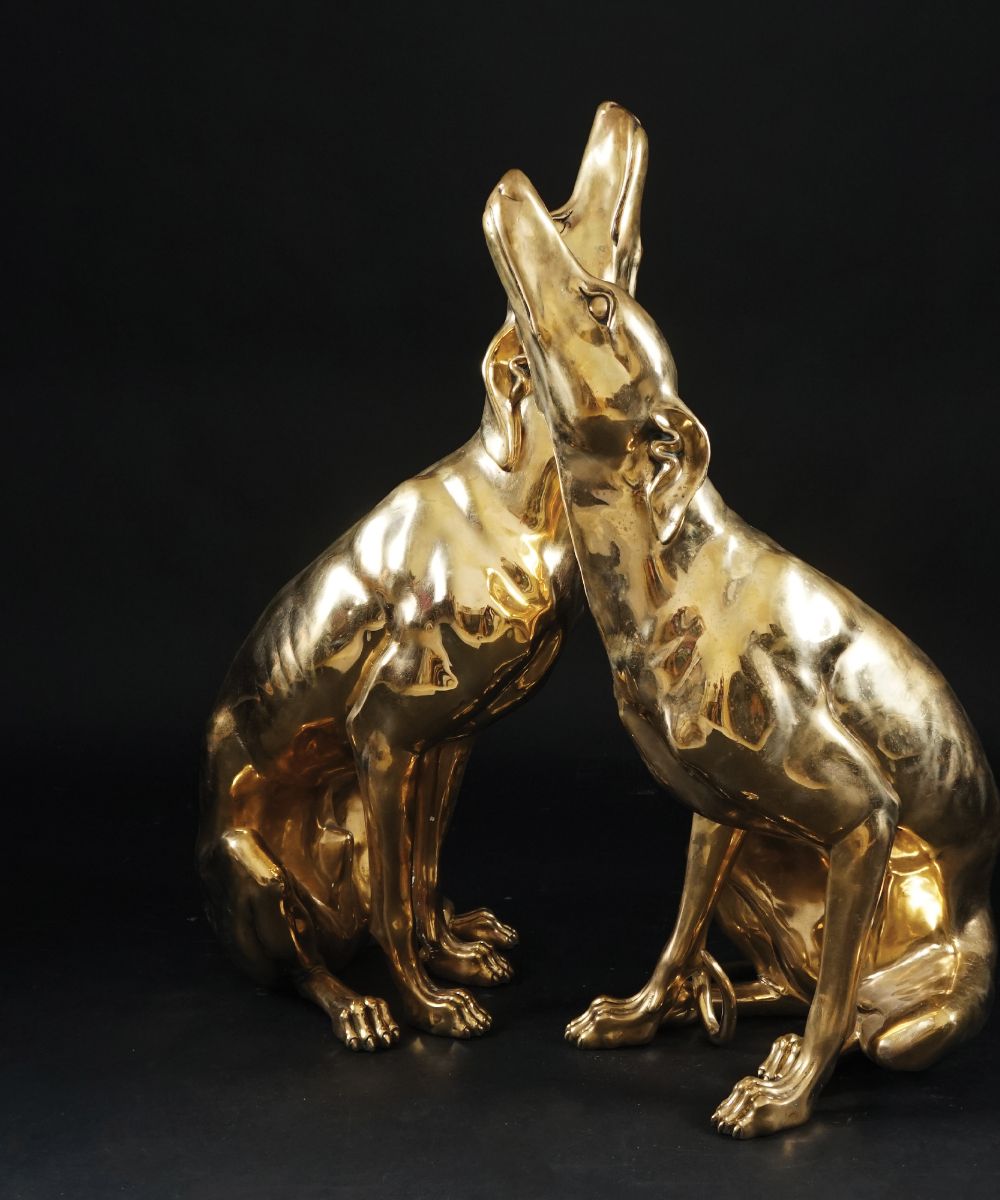 Lot 421 | Coppia di sculture in bronzo patinato ciascuna raffigurante un levriero...