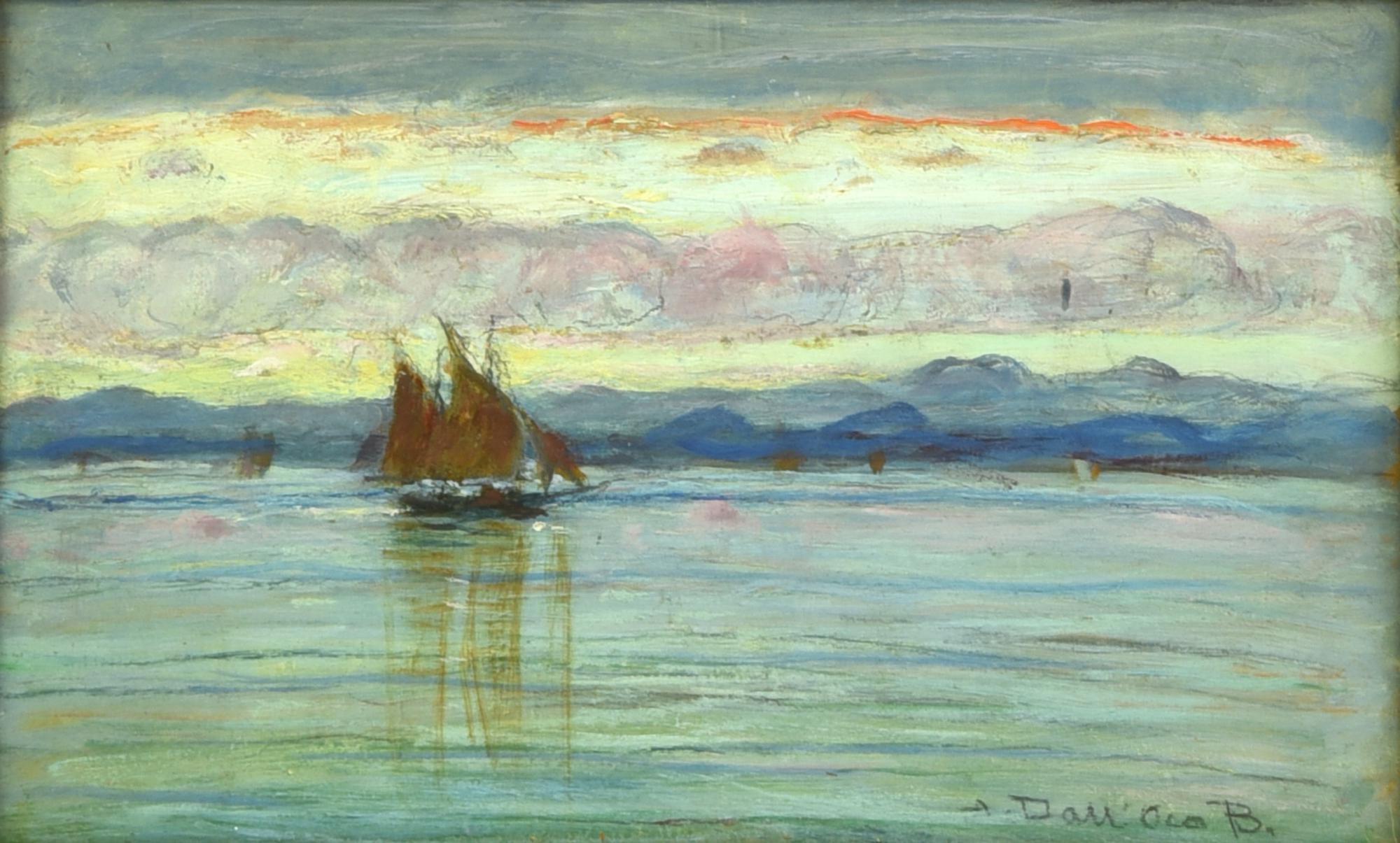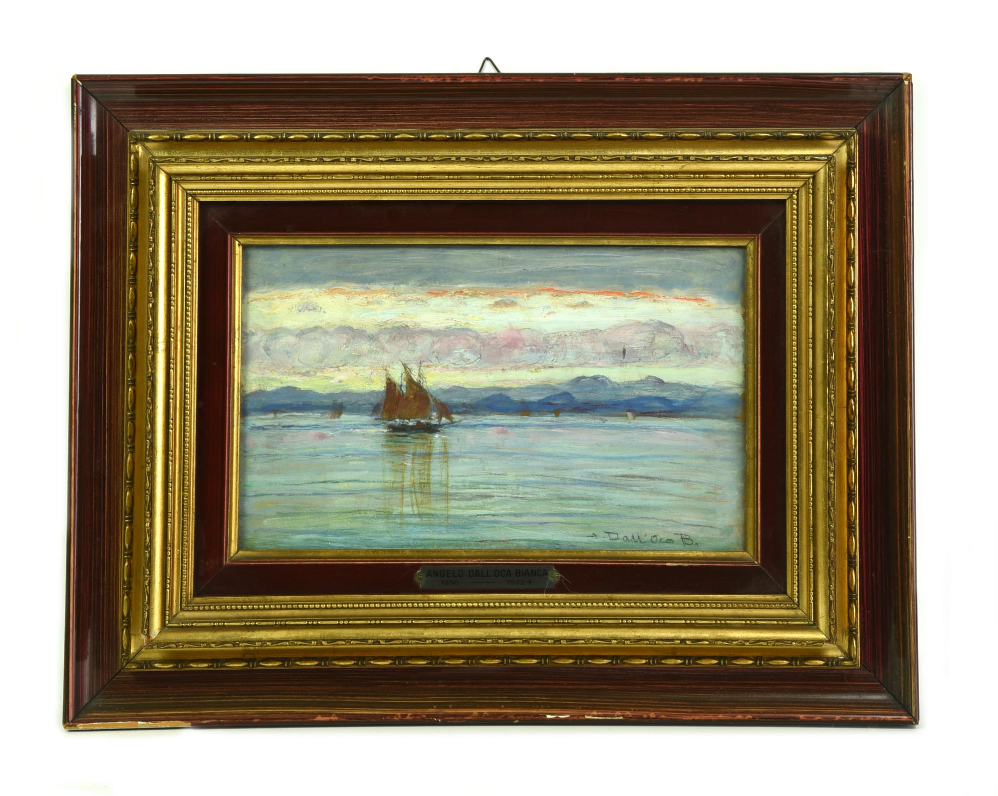 Angelo dall'Oca Bianca (1858 - 1942) IL GARDA olio su tavoletta, cm 17x29...