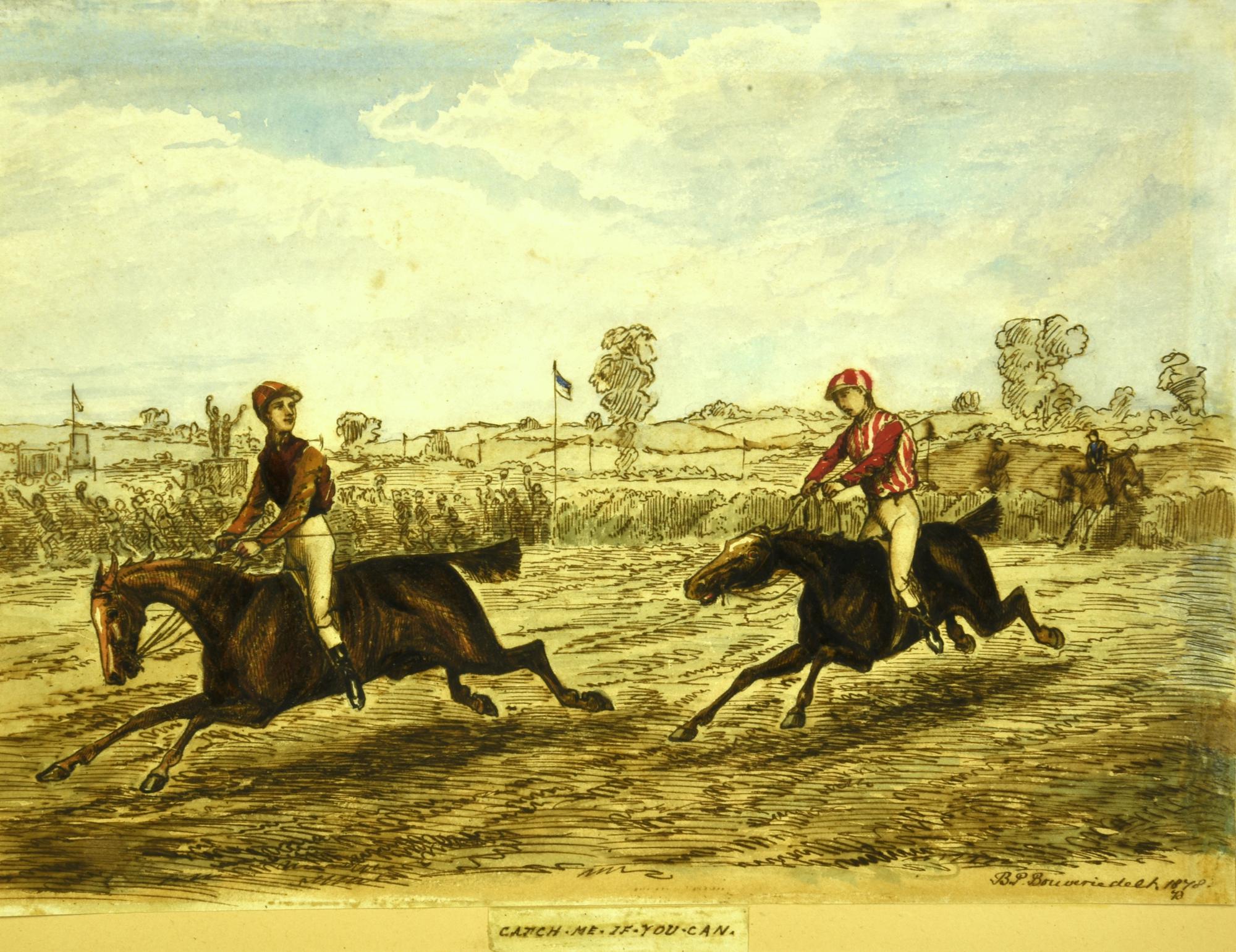 Scuola inglese del XIX secolo CATCH ME IF YOU CAN china e acquarello su carta...