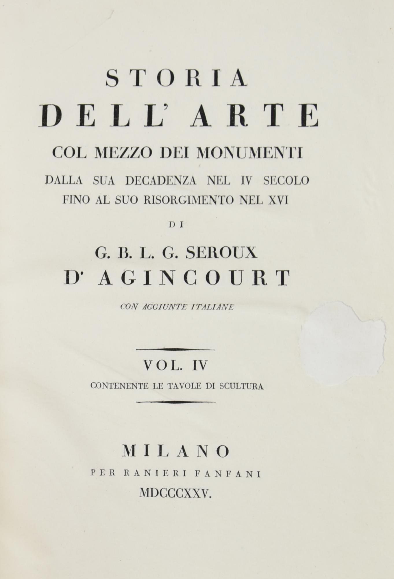 G. SERAOUX D'AGINCOURT. STORIA DELL'ARTE COL MEZZO DEI MONUMENTI DALLA SUA DECADENZA NEL IV SEC. FINO AL SUO RISORGIMENTO NEL XVI SEC.