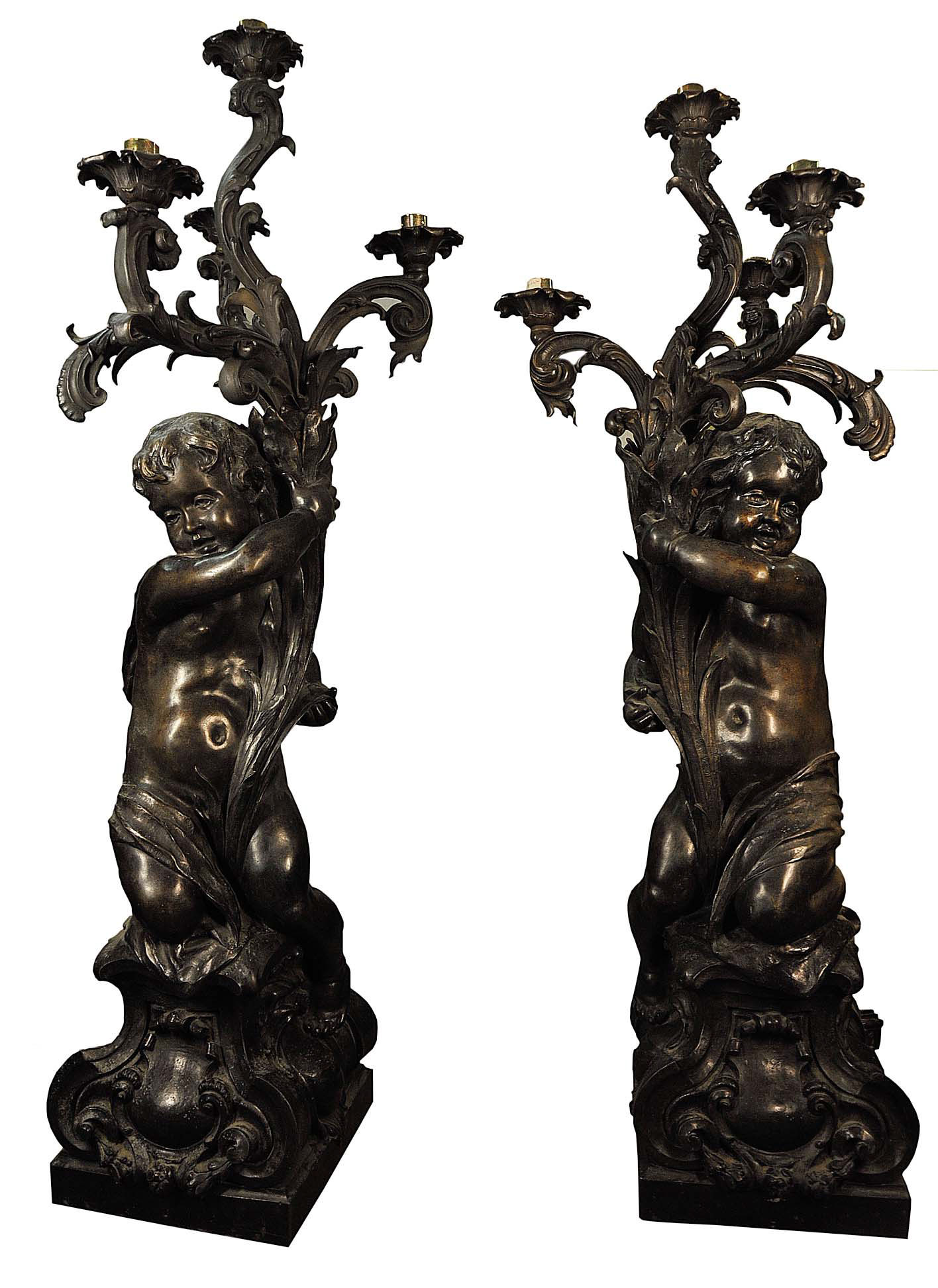 COPPIA DI CANDELIERI IN BRONZO Produzione industriale piemontese o francese,...