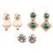 3) Orecchini pendenti a forma geometrica con due grandi pietre verdi e clip.