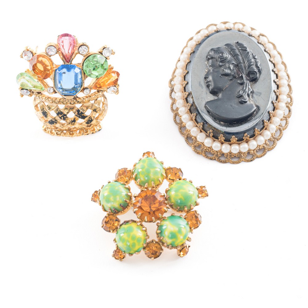 1) Spilla cammeo bordata di piccole perline.