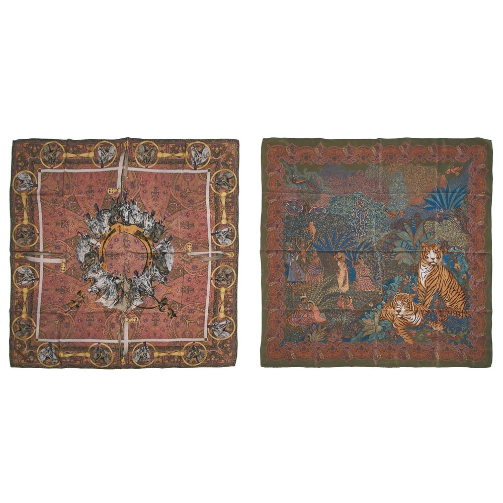 2) Foulard in pura seta raffigurante cavalli ,no signe.