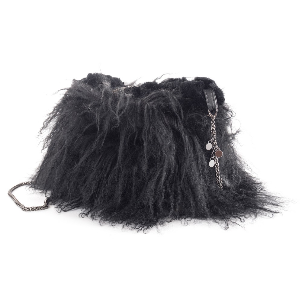 Borsa in pelliccia di Mongolia nera con tracolla a catena.