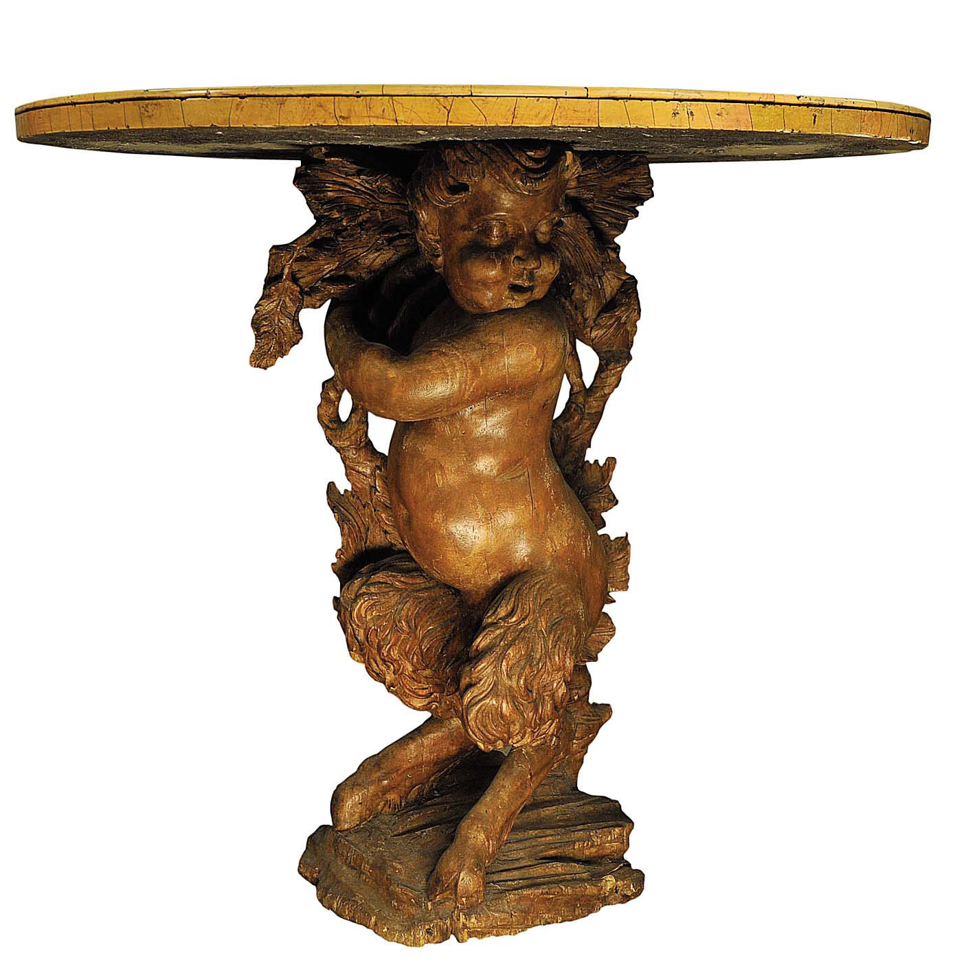 TAVOLO SORRETTO DA SATIRO Produzione romana, 1660-1680 ca. (?) Base in legno...