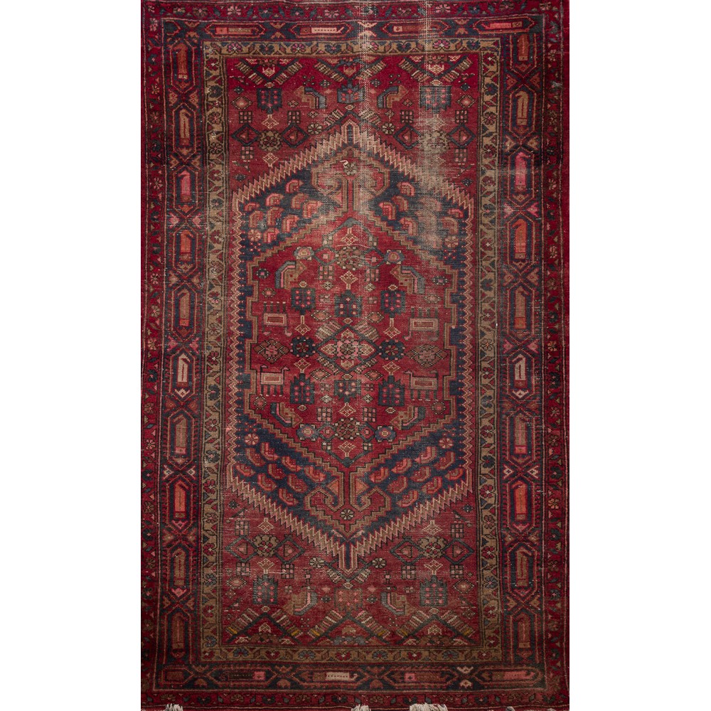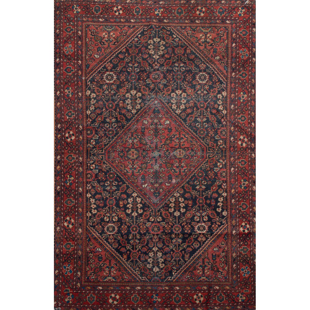 Tappeto Kamseh, trama ed ordito in cotone, vello in lana (usure). Persia XX secolo.