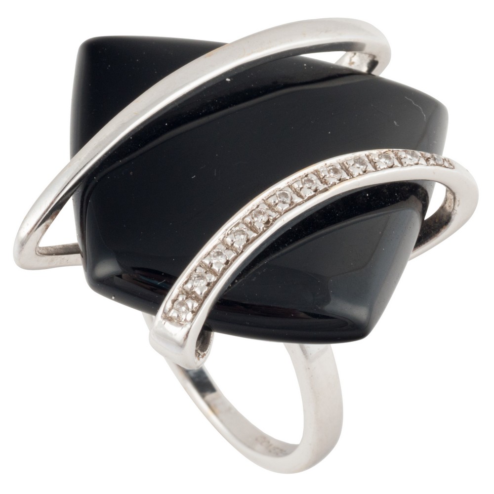 ANELLO in oro bianco 18 KT con brillanti e onice.