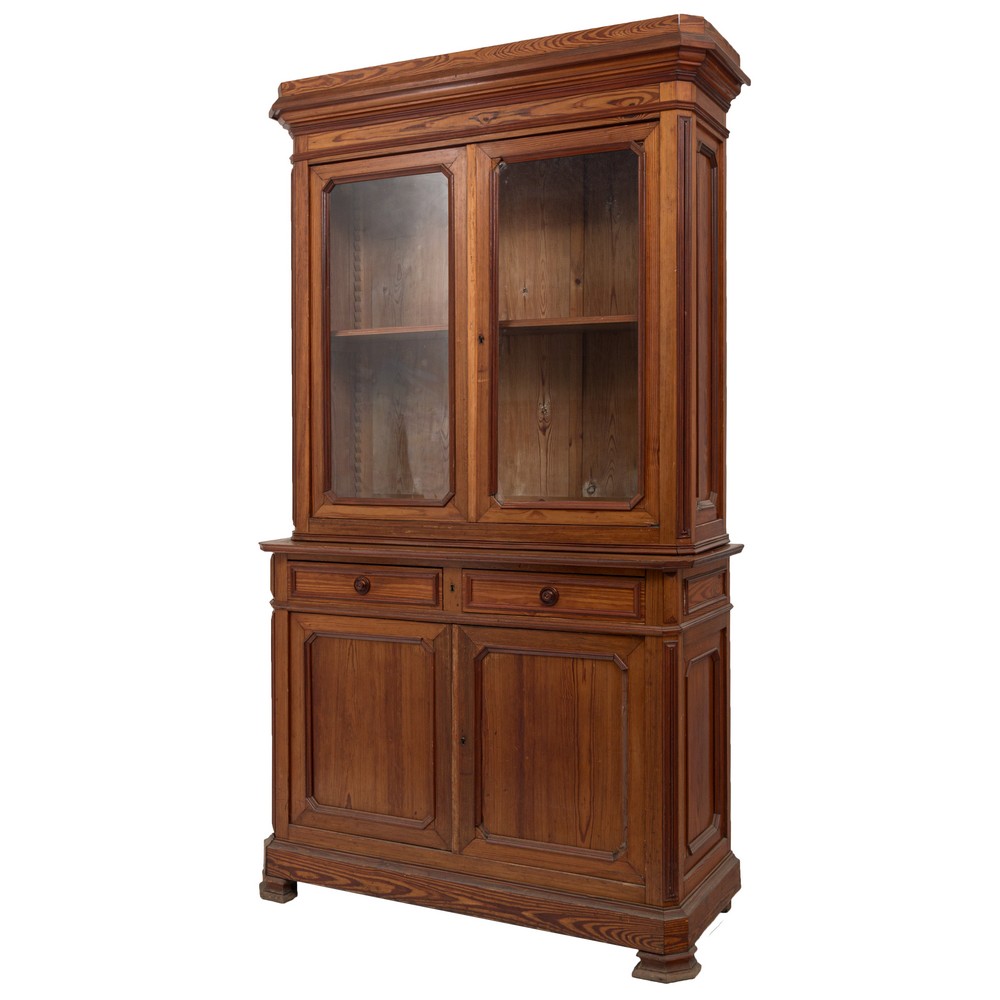 in pino pece a due ante e due cassetti nella parte sottostante, due ante a vetro nella parte superiore. Sicilia XIX secolo.