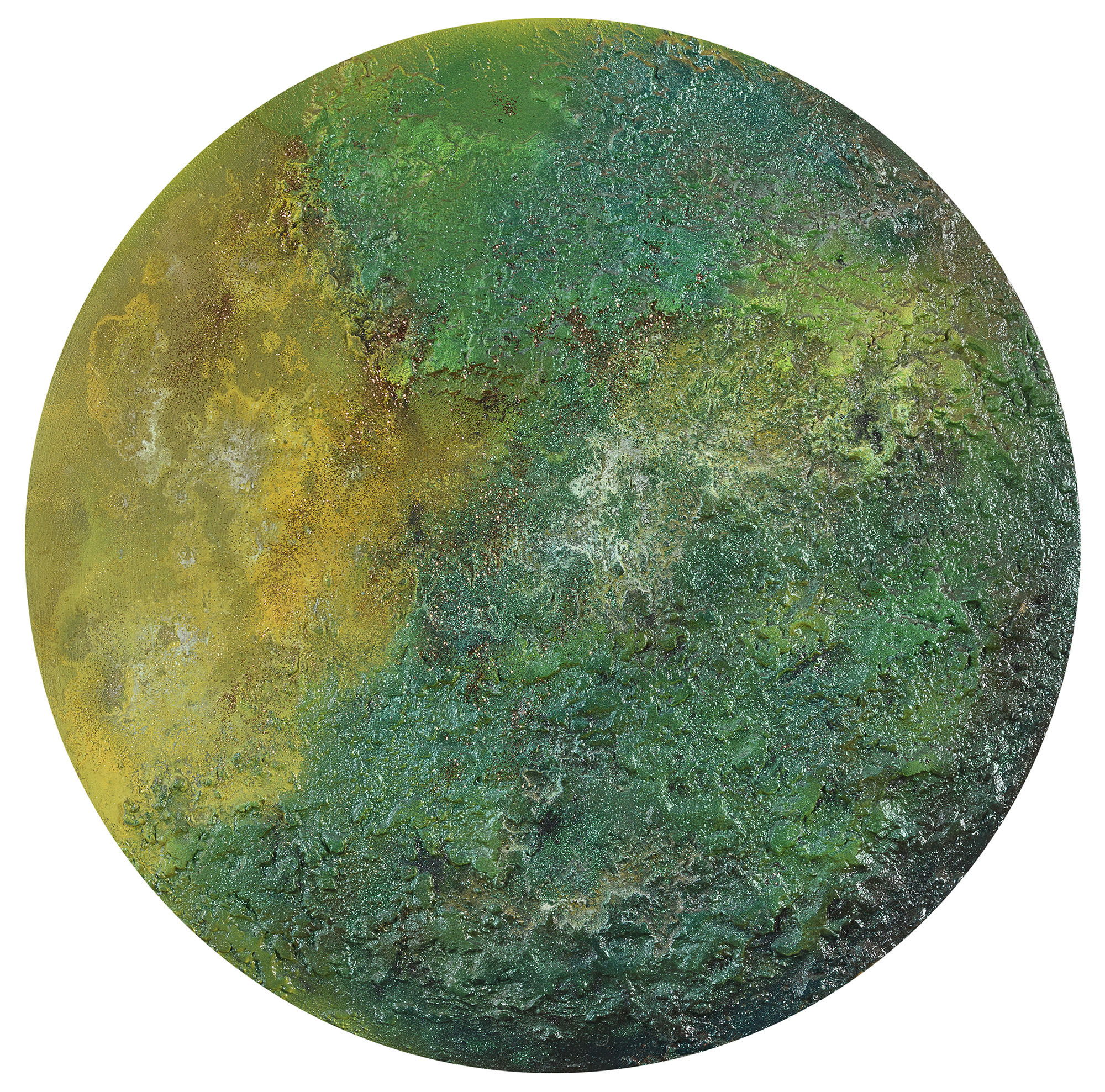 Tecnica mista in rilievo su tavola, diametro cm. 80