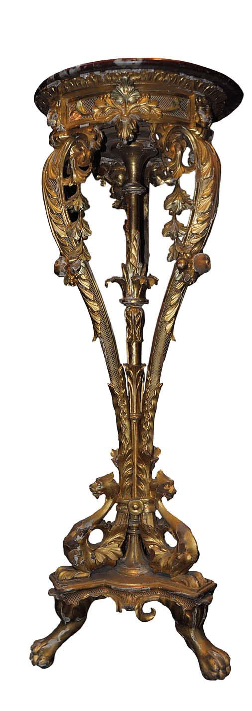 GUÉRIDON IN STILE LUIGI XV Legno dorato, marmo rosso di Francia 134x50 cm. Stato di conservazione Superficie: 75% (cadute della doratura e della preparazione) Struttura: 90% (danni)
