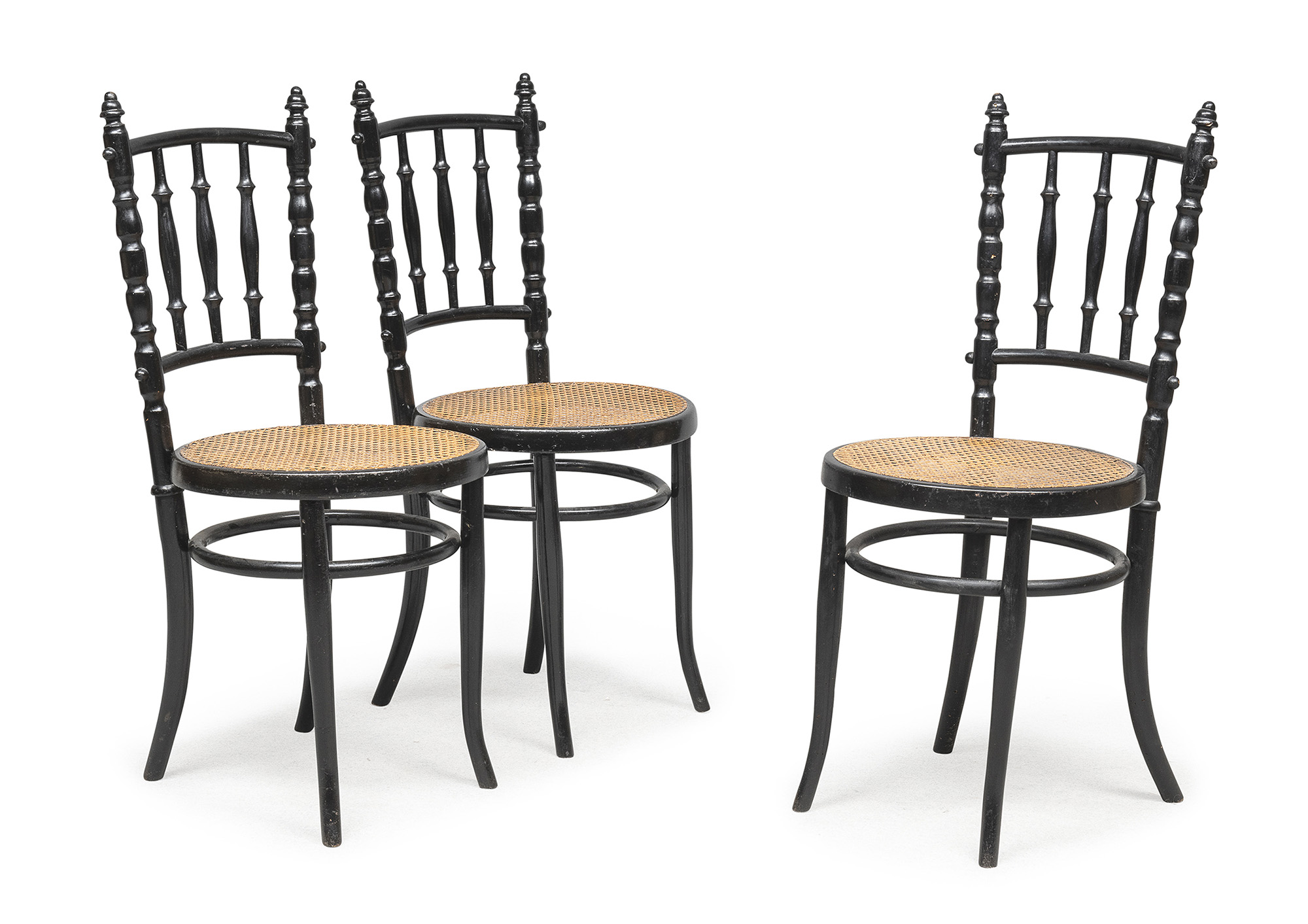 Lot 276 | TRE SEDIE IN LEGNO EBANIZZATO, PROBABILMENTE FISHER