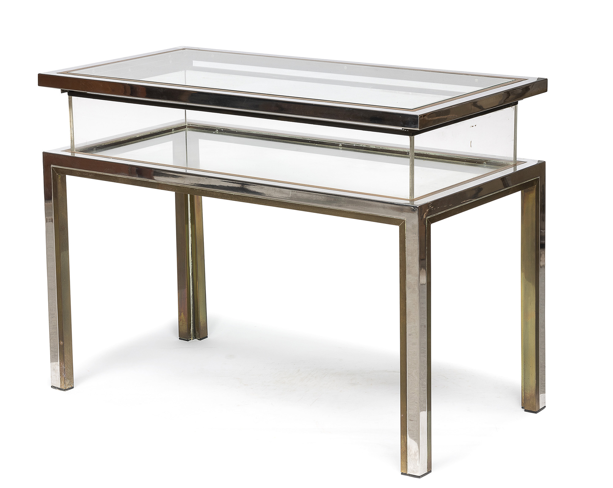 TAVOLO VETRINA IN METALLO CROMATO, ANNI '70