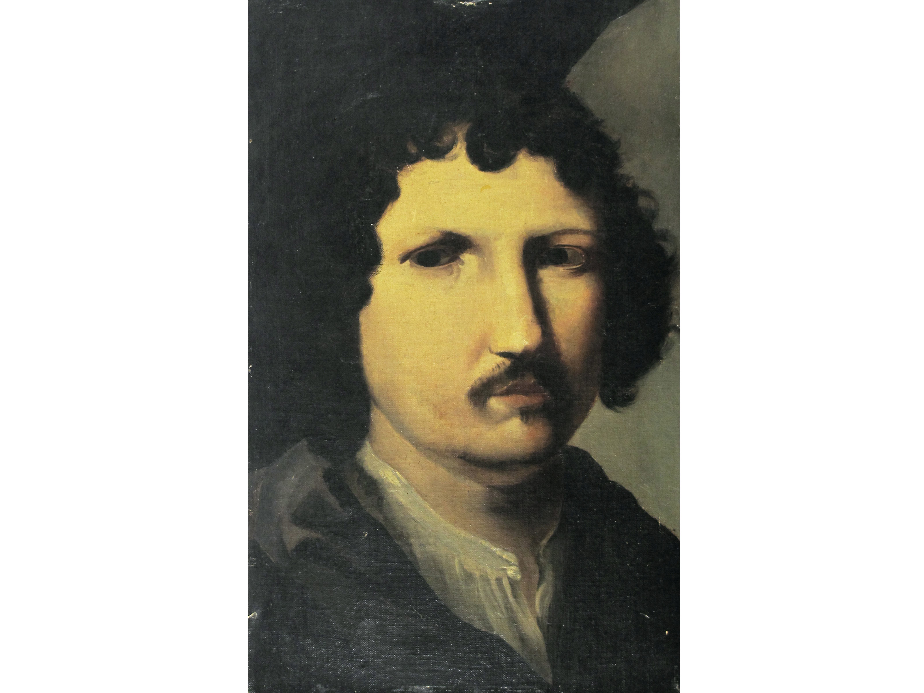 Scuola lombarda Antica Testa maschile Olio su tela applicata su tavola Senza...
