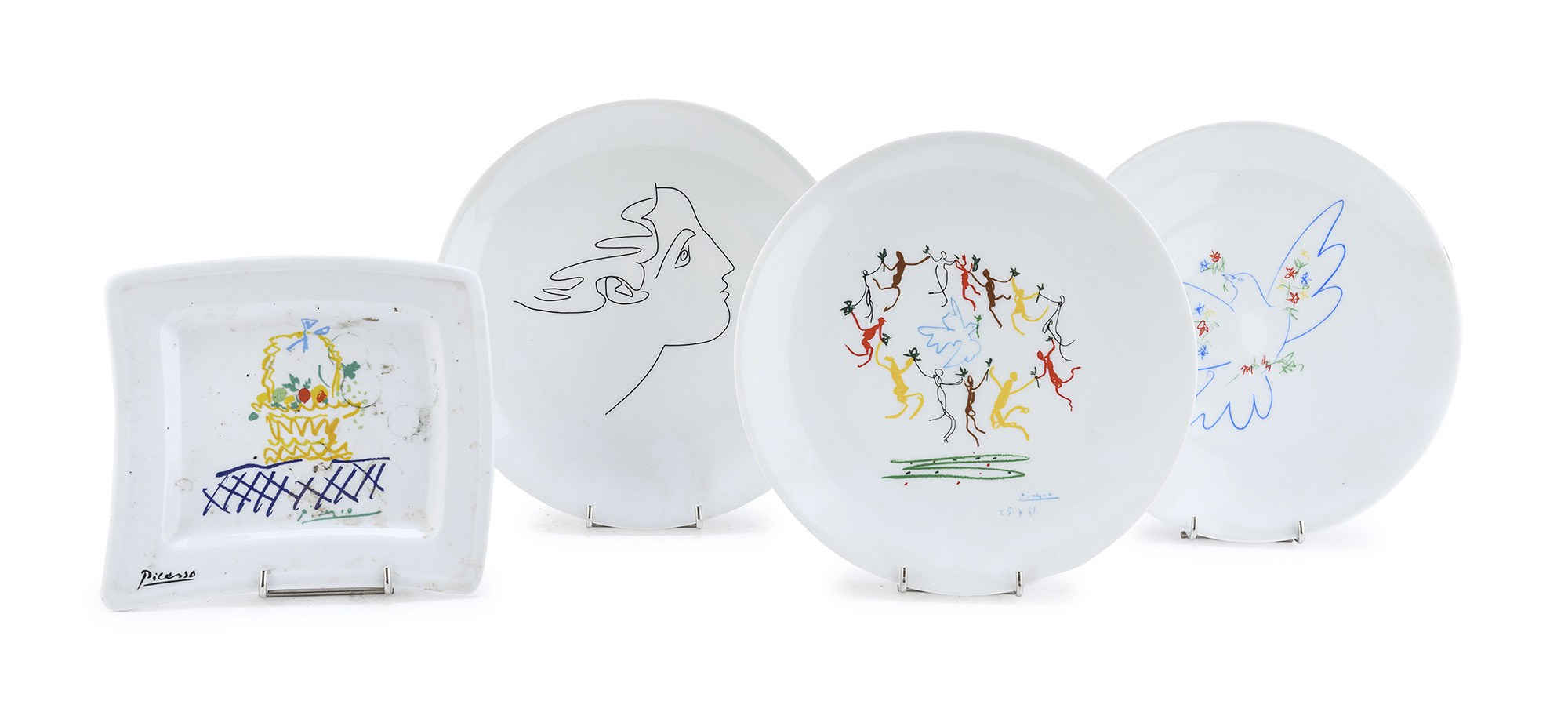 TRE PIATTI ED UNA VASCHETTA PICASSO, LIMOGES FINE XX SECOLO
