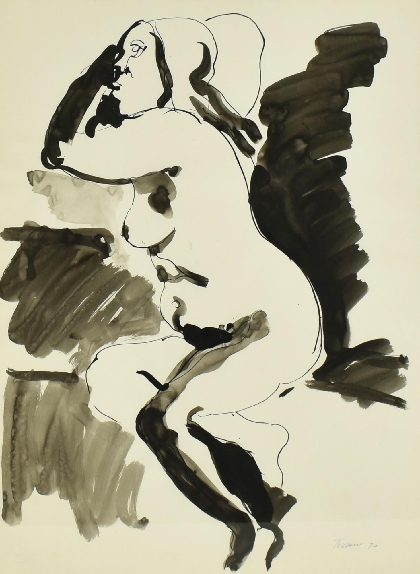 Saverio Terruso NUDO FEMMINILE china su carta, cm 66x48 firma e data eseguito...