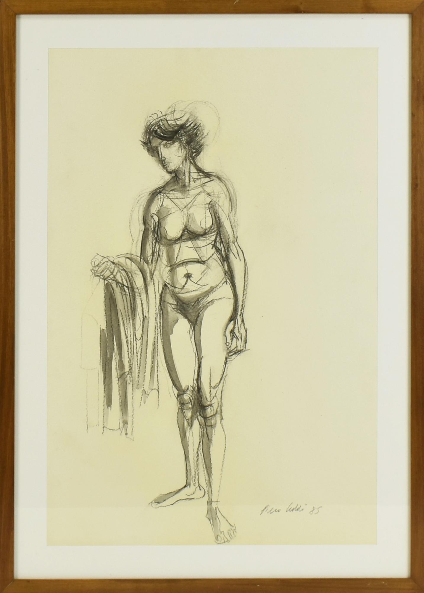 Piero Leddi NUDO FEMMINILE china e carboncino su carta, cm 60x40 firma e data...