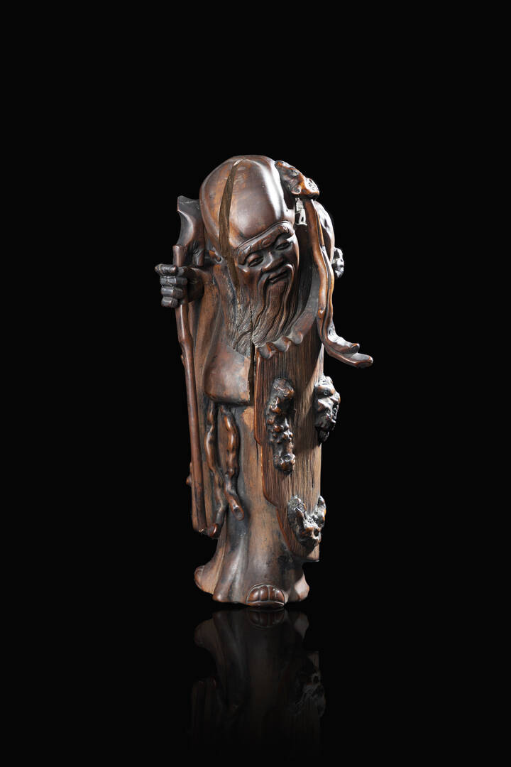 Figura di saggio in legno, Cina, dinastia Qing, XX secolo.