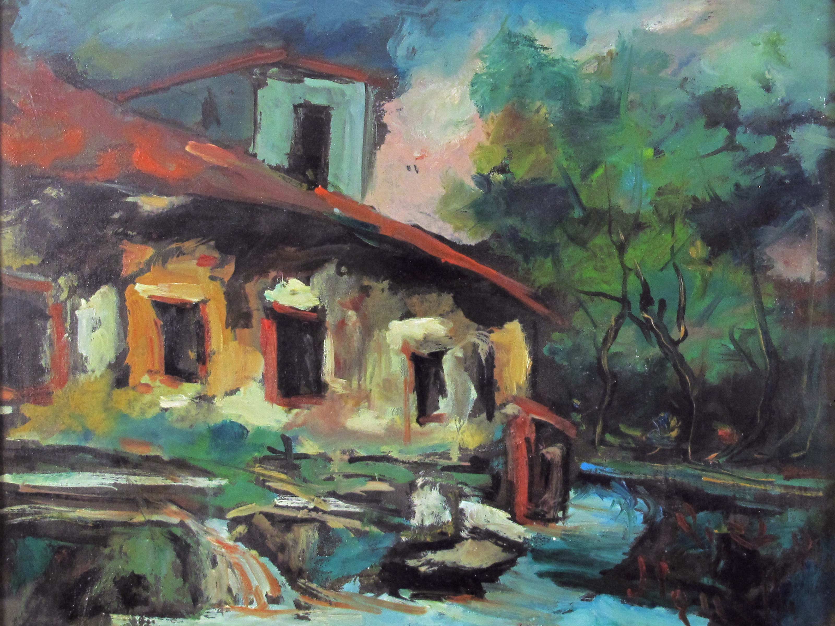 Piero Agnetti (Villafranca in Lunigiana 1938) Paesaggio Olio su cartoncino Firmato Misure 38x48 cm