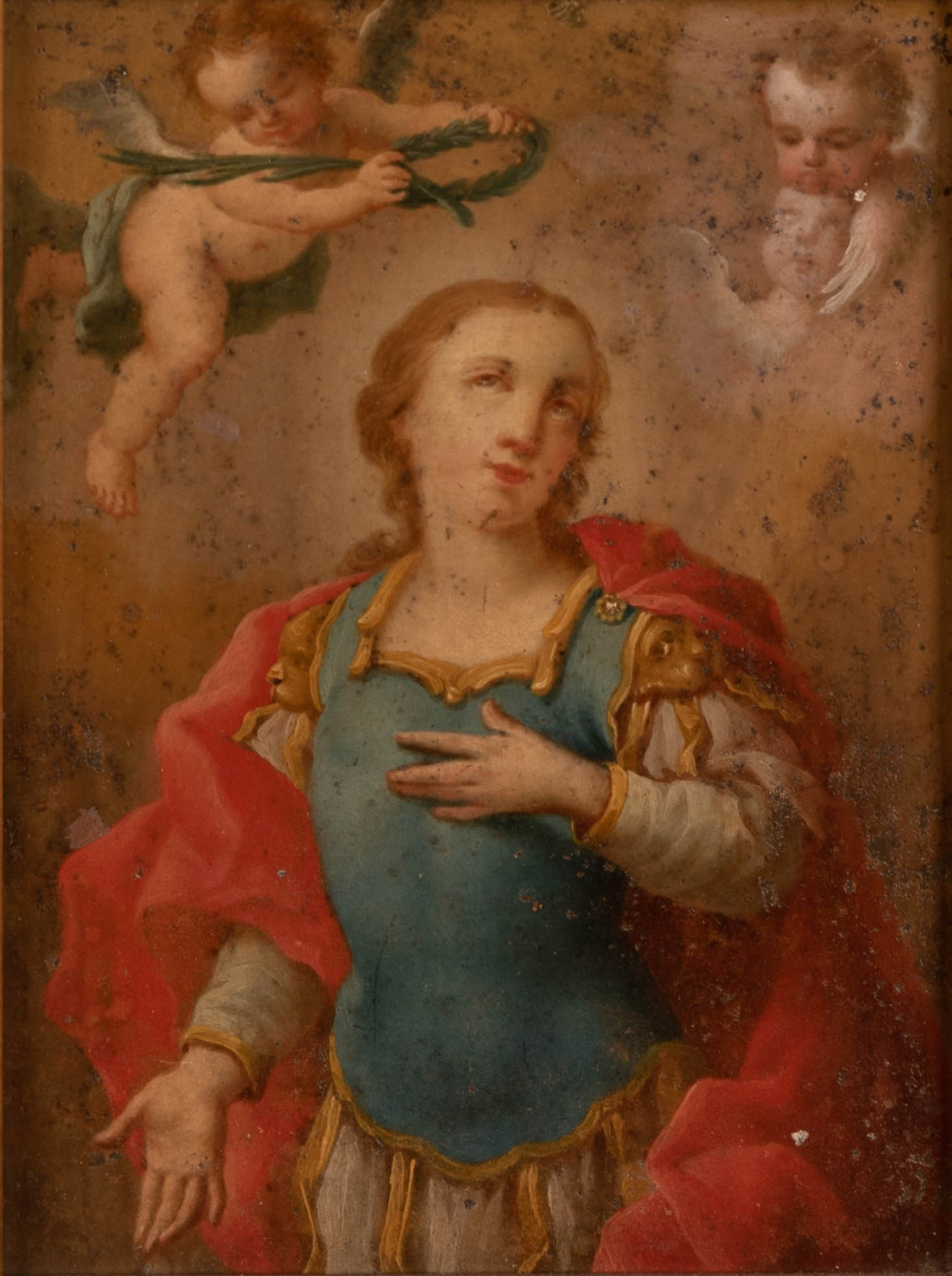 Lot 6 | Scuola Romana XVIII secolo ( - ) San Giorgio con putti e cherubini olio su rame cm 20x15