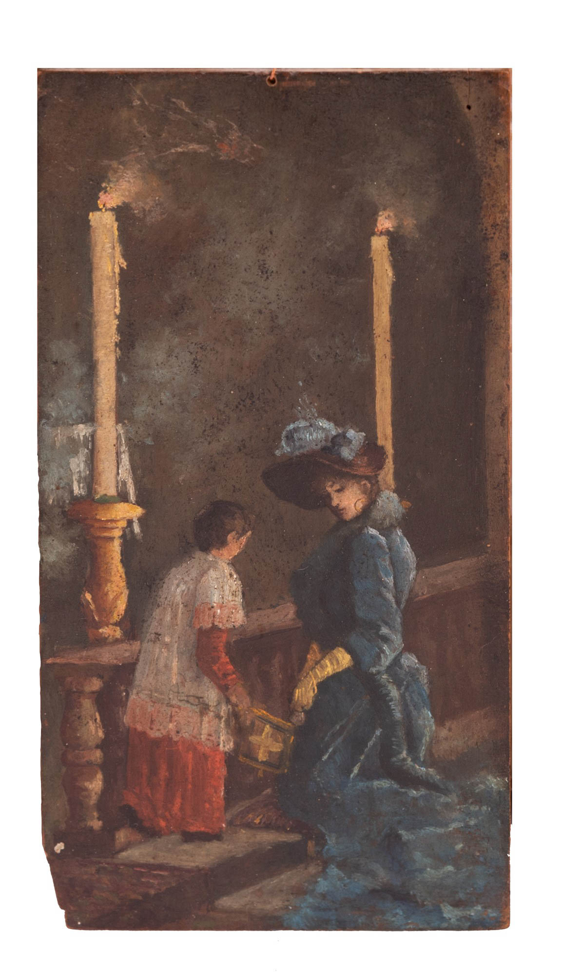 Scuola Italiana XX secolo ( - ) In Chiesa Olio su tavola cm 20,5x10,5