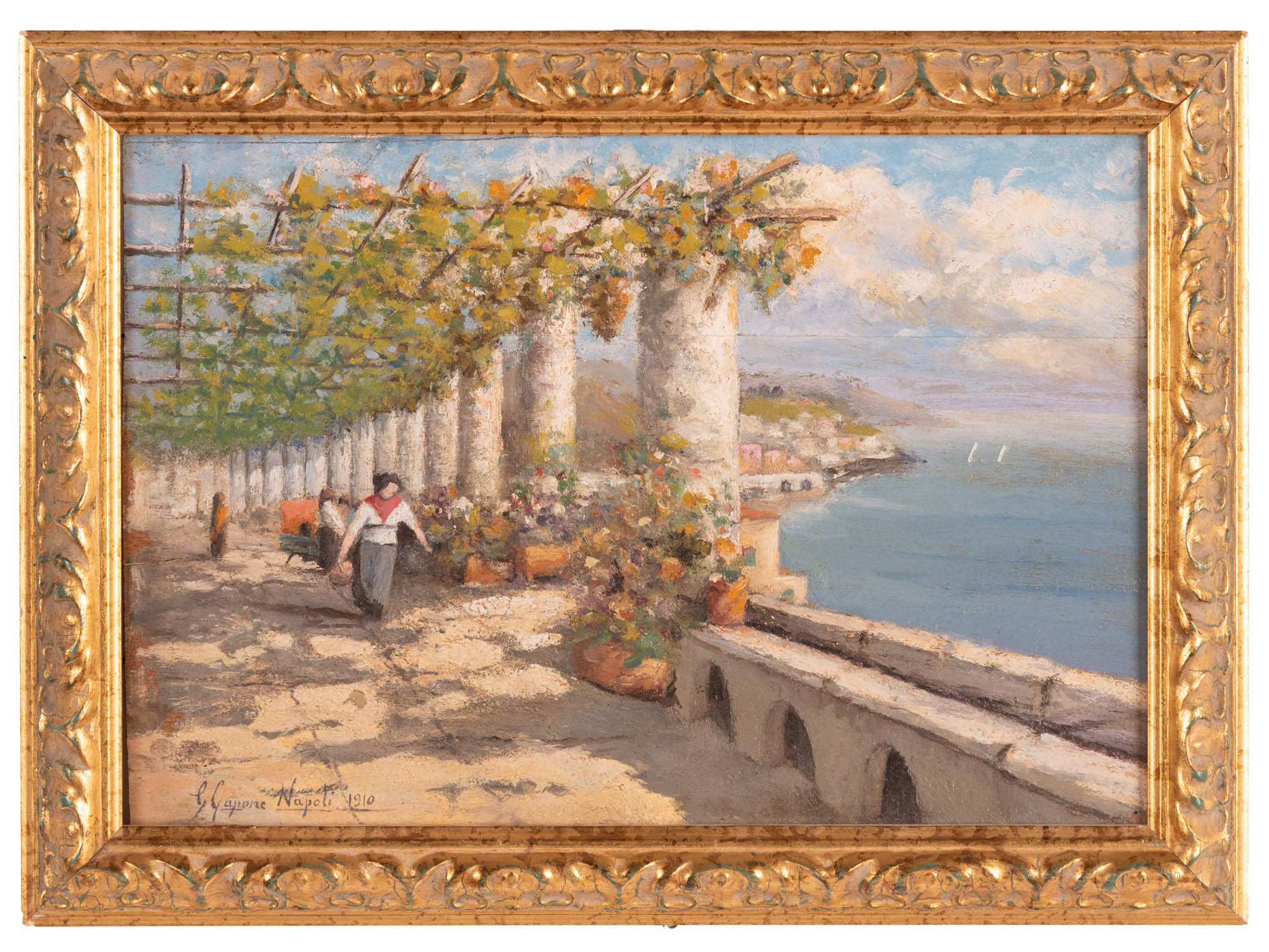 Olio su tavola cm 24x35 Firmato e datato in basso a destra "G. Capone Napoli 1910", dipinto su ambo i lati.