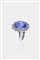in oro bianco, sommità a margherita con al centro uno zaffiro taglio ovale Ceylon di ct 6,12 ca contornato da diamanti taglio brillante per totali ct 2,40 ca