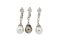 pendenti, a clip, in oro bianco con diamanti taglio brillante per totali ct 2,0 ca, probabile colore G-H, purezza IF-VVS, terminanti con due perle australiane a pera del diam di mm 10,5 e uno con perla Tahiti a pera del diam di mm 10,8 ca