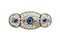 in oro bianco, anni '40, al centro tre zaffiri cabochon per totali ct 4,0 ca e diamanti taglio vecchio e rosette per totali ct 1,60 ca
