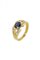 in oro giallo, sommità con al centro zaffiro taglio ovale di ct 1,20 ca ed ai lati intreccio in diamanti taglio baguette per totali ct 0,60 ca